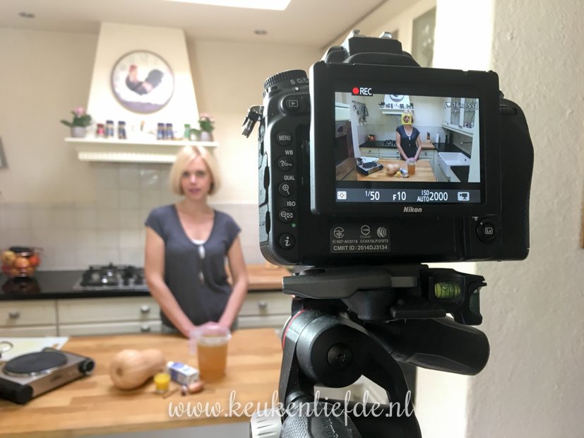 Ella-Marie heeft ’s middags een kinderfeestje en Johan helpt mij in de tussentijd met het opnemen van nieuwe kookvideo’s. Ik maak pompoensoep en …