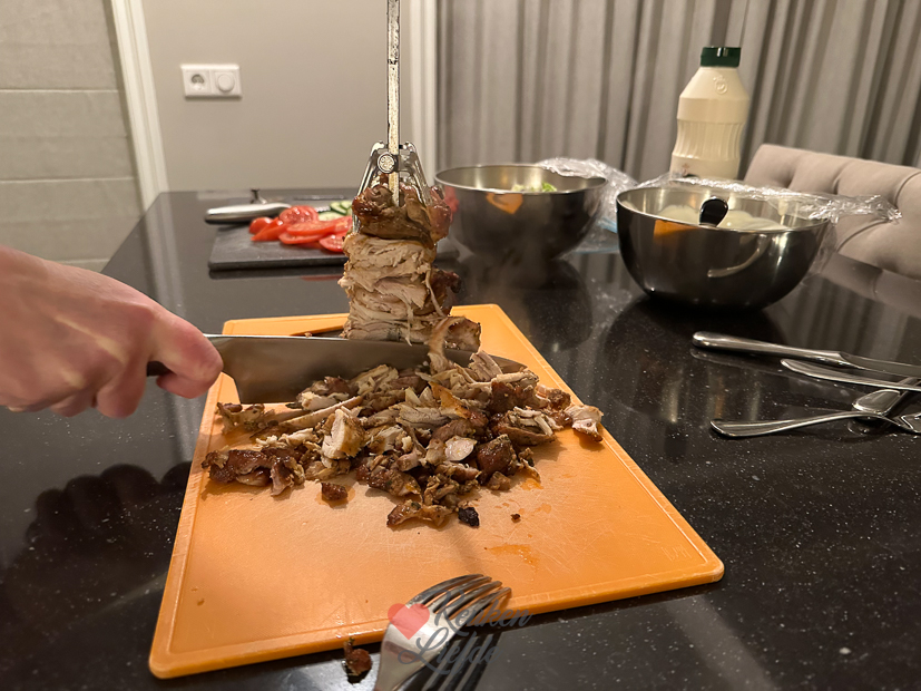 Ella zou eigenlijk een voetbalwedstrijd hebben maar die werd last minute afgelast vanwege het slechte veld. Een mooie gelegenheid om iets langer op bed te blijven liggen. Niet heel lang, want er is genoeg te doen. Vandaag staan er wat klusjes op de planning zoals het verplaatsen van de wasmachine en droger van de keuken naar de bijkeuken. Binnenkort wordt de kastenwand in de keuken geplaatst en deze komen daar niet in. De bijkeuken wordt hun vaste plek maar zoals je ziet moet hier nog wel flink verbouwd worden. Alles op zijn tijd. Eind van de middag wordt er weer lekker gewandeld en daarna gaat de houtkachel aan. Voor het avondeten grillen we gemarineerde kippendijen op het ovenspit en serveren die met frietjes, een salade van spitskool, ui, ijsbergsla, tomaat, komkommer en feta en zelfgemaakte knoflooksaus. Ik deelde er stories van op IG en Steel reageerde daarop dat we de volgende keer het bakpapier weg moeten laten en het bakblik moeten vullen met water. Zo blijft de kip sappiger. De kip was supersappig maar de volgende keer gaan we dat zeker uitproberen. Het was de eerste keer dat we het ovenspit uitprobeerden en we vonden het een groot succes. Verder keken we ’s avonds met z’n drieën de film Ticket to Paradise. Erg leuk vonden wij!