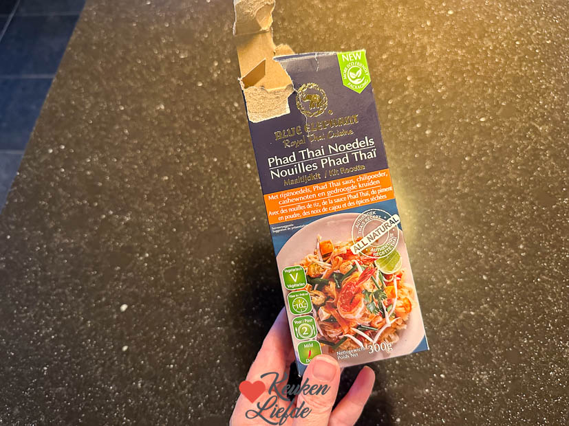 ’s Avonds eten we pad thai die ik maak met een pakje van Blue Elephant die ik opgestuurd had gekregen. Ik moest alleen zelf kip, taugé en een ei toevoegen. De kip was ik vergeten en in plaats van taugé had ik een zak gesneden Thaise wokgroenten toegevoegd. We vonden het erg lekker. Toch zou ik zelf niet zo snel zo’n pakje kopen omdat het maar voor twee personen is en pad thai supermakkelijk en snel zelf te maken is. Mijn favoriete recept voor zelfgemaakte pad thai vind je in mijn kookboek Makkelijke Wereldgerechten.