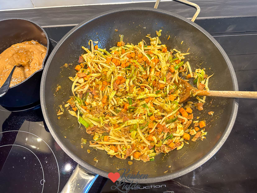 En weer een nieuwe week! De zomer is nu toch echt voorbij en ik krijg weer zin in hartverwarmende herfstgerechten. Die plan ik dan ook in als ik aan de keukentafel aan de slag ga met de eetplanning voor deze week. ’s Middags komt de tiener zeiknat geregend thuis van school. Als ze is omgekleed komt ze aan de keukentafel leren voor een toets en ondertussen maak ik het avondeten. Op het menu staat bami met mini loempia’s, pindasaus en kroepoek. Ook dit keer gebruikte ik weer een pakje: namelijk de nasi goreng kruidenpasta van Fairtrade Original die we hadden gekregen. Er stond op de verpakking dat hij mild pittig is (wij houden wel van pittig eten) maar deze vonden wij (vooral Ella-Marie en ik) wel heel pittig en te scherp gekruid. Volgende keer maak ik hem dus weer lekker zelf. In ons kookboek Makkelijke Wereldgerechten vind je mijn favoriete recept voor bami goreng!