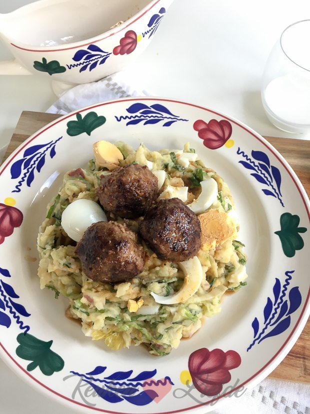 Voor het avondeten maak ik nog een keer andijviestamppot, maar dit keer eten we hem zelf op. Ik bak er ook nog gehaktballetjes bij.