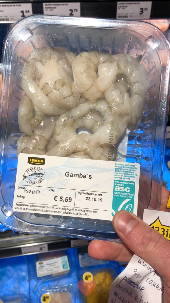 - Rauwe, gepelde gamba’s: check!