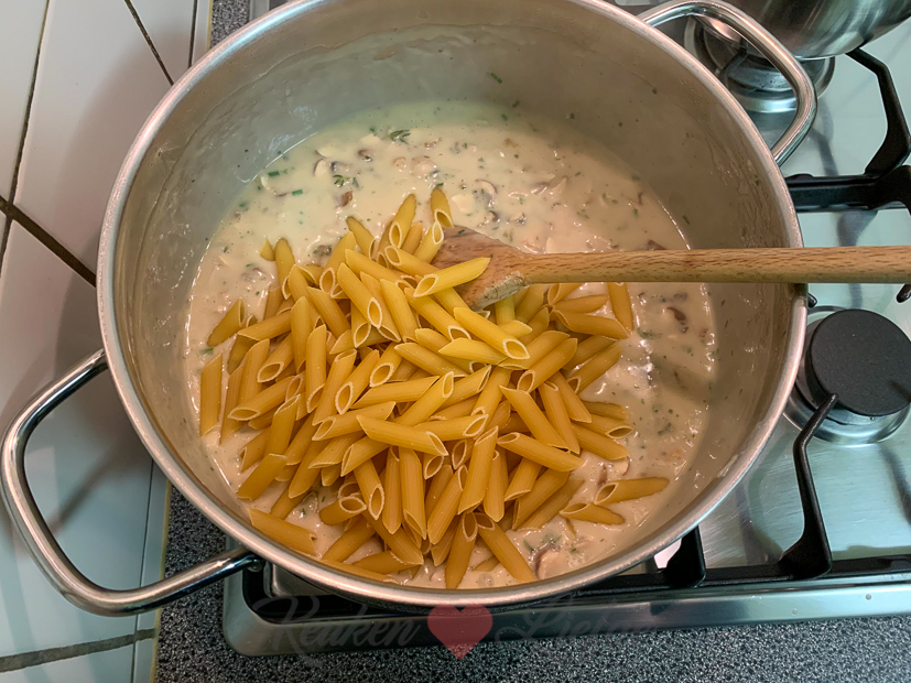 - Een lepeltje crème fraîche op de pasta maakt het af! Ik hou van romig. 🙂