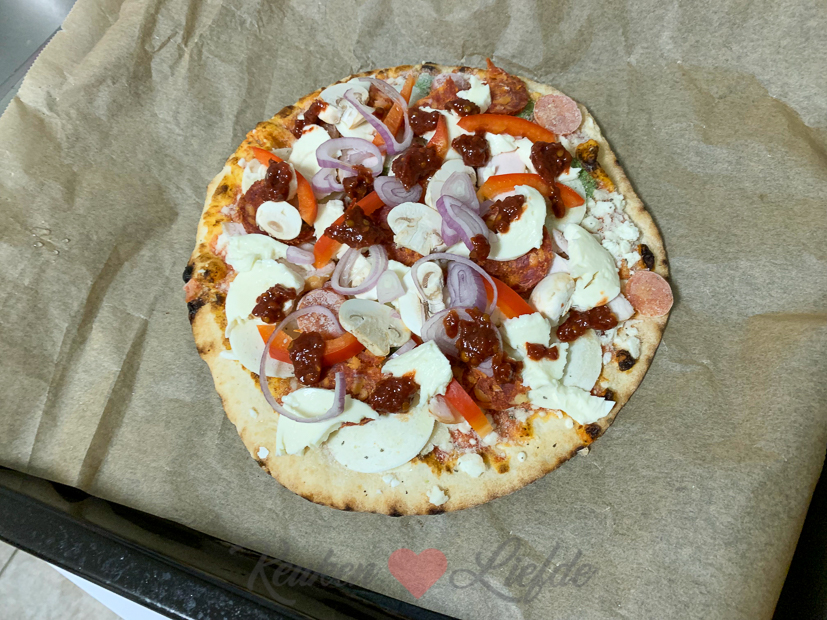 In de ochtend breng ik Ella-Marie (en de pan bruine-bonensoep) naar mijn ouders. Ze mag een nachtje blijven logeren. Eenmaal thuis ga ik achter de computer aan het werk voor KL. Omdat ik lang doorwerk besluiten Johan en ik ’s avonds een pizzaatje te eten. Een kant-en-klare diepvriespizza dit keer die we zelf nog extra beleggen.