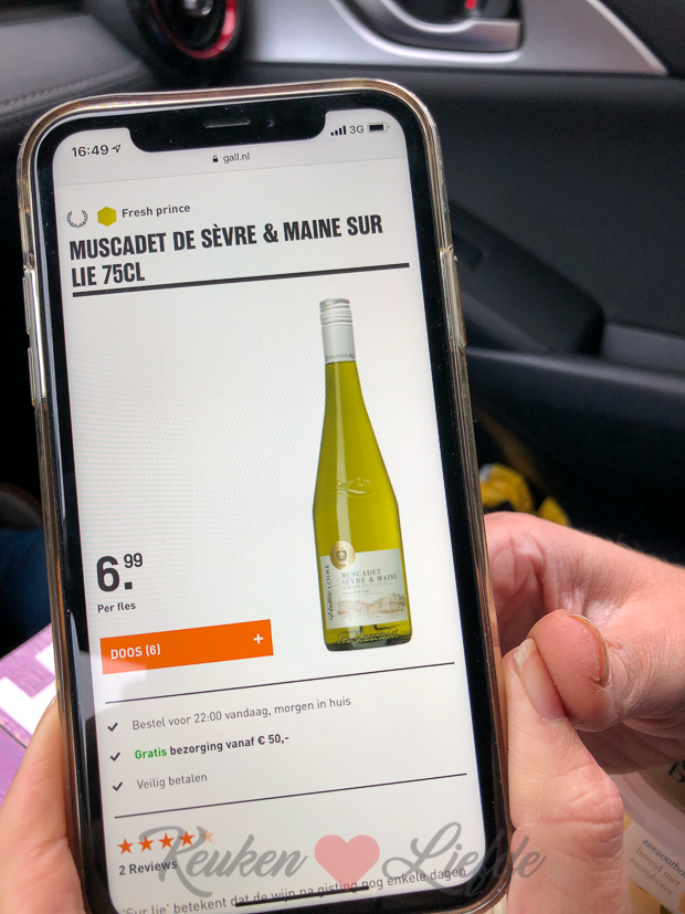 Daarna stappen Johan en ik in de auto en rijden naar mijn ouders om Ella-Marie op te halen. We eten ook gelijk een hapje mee dus halen we onderweg nog een wijntje bij de slijter. Er staan mosselen op het menu, dus zoek ik snel op mijn telefoon naar een goede mosselwijn. Deze is het geworden.