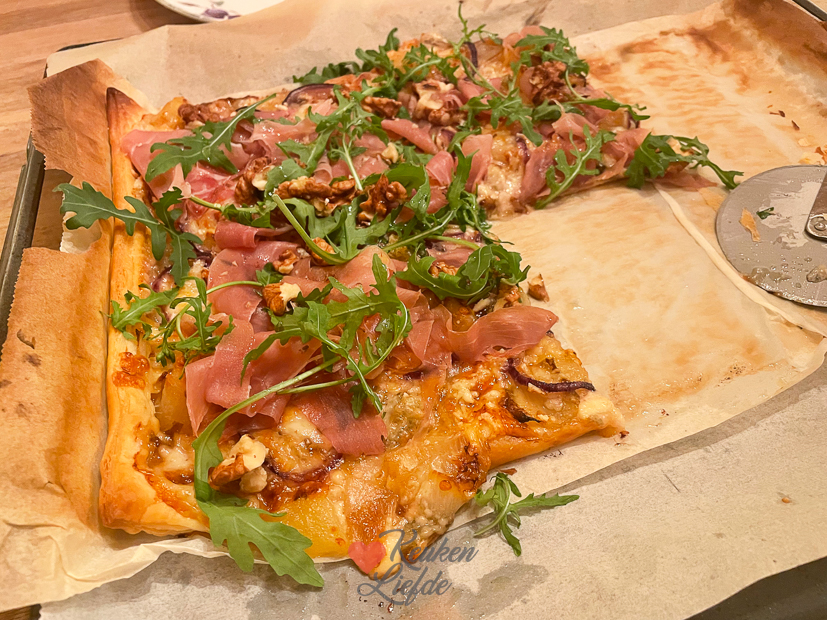 Als Johan en Ella de deur uit zijn en ik het recept voor vandaag heb gepubliceerd, ga ik de keuken in om een ontbijtje te maken. Vriendinnetje Miranda komt zo gezellig ontbijten. Ze had zelf nog lekkere gebakjes meegenomen die we ook op tafel zetten. Was supergezellig. Daarna werkte ik nog even op kantoor en niet veel later kwam Ella weer thuis uit school. Voor het avondeten maakte ik een plaattaart van bladerdeeg die ik besmeerde met magor en belegde met gebakken witlof, peer, rode ui en gorgonzola. Na het bakken in de oven ging er nog rucola, Parmaham en waltnoot overheen. Het recept lijkt hierop. Erg lekker!