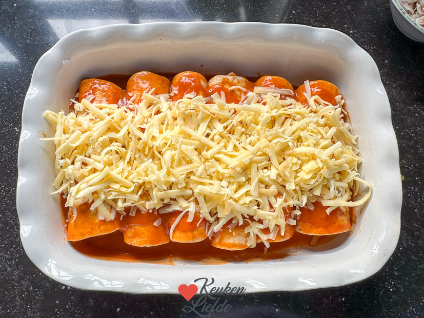 Ik zet een artikel online en daarna ga ik naar de winkel om wat boodschappen te doen. Als alle boodschappen zijn opgeruimd ga ik meteen aan de slag met een nieuw recept. Ik maakte Mexicaanse enchiladas met kip. Ze zijn ’s avonds ook ons avondeten en dan serveer ik ze met refried beans (gebakken en gestampte bonen), tomatenrijst en pico de gallo.