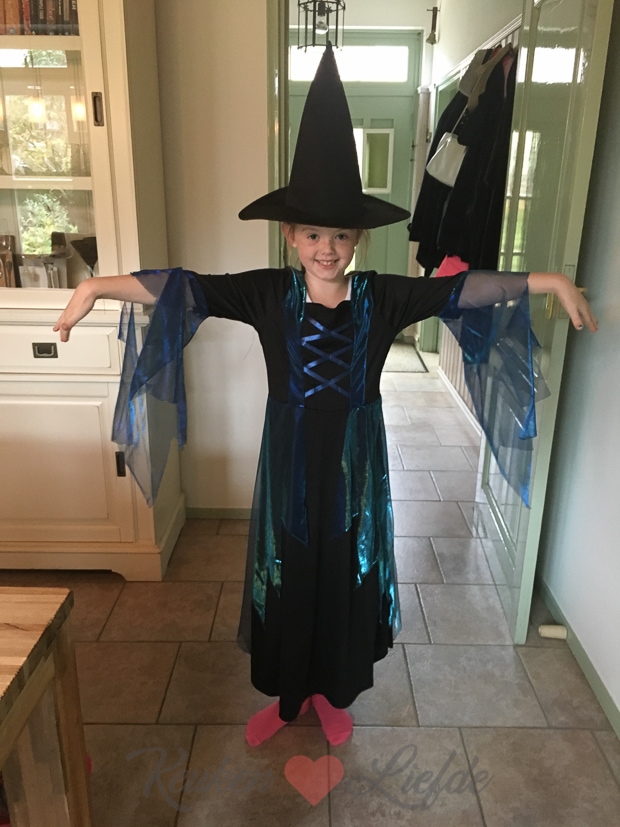 Ook krijgen we de Halloween-outfit thuisbezorgd die ik voor Ella-Marie besteld had. Wat een schattig heksje hè! 😉