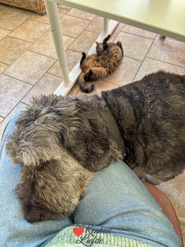 Johan is vrij vandaag maar is niet echt fit en loopt flink te snotteren. Ik werk in de ochtend een paar uurtjes op kantoor en maak ’s middags de bovenverdieping schoon. Johan kookt ’s avonds een lekker potje eten voor ons. Op het ei grilt hij een varkenshaasje en maakt champignonroomsaus. Verder maakt hij een salade en frituurt röstirondjes. Was heerlijk! Na het eten kijken we samen nog een aflevering van de serie Killing Eve en dan is het alweer tijd om onze muppet op te halen die vanmorgen weer uit London was vertrokken. Ze was minder moe dan we hadden verwacht want ze ratelde in de auto naar huis aan één stuk door over het gastgezin en London en dat ging thuis nog even door. Ze heeft een topweek gehad!
