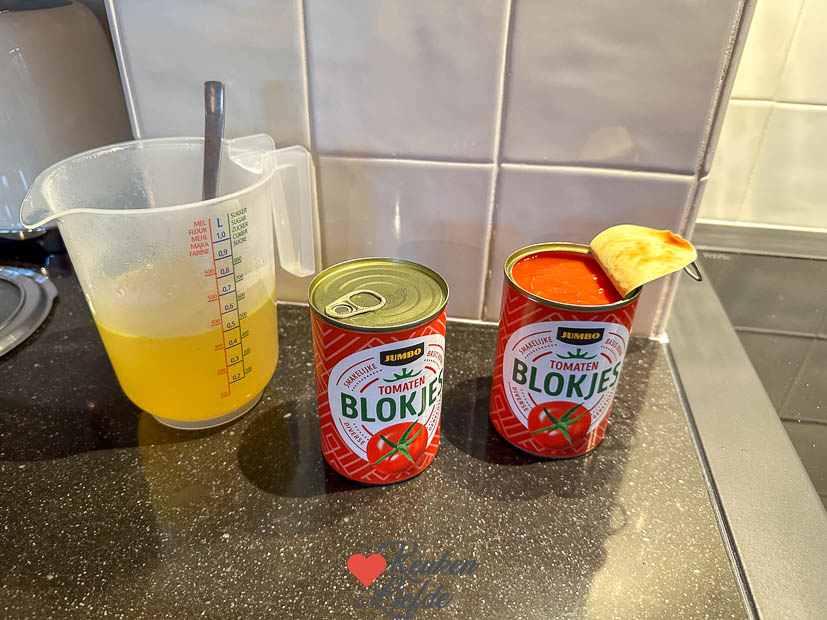 Ella-Marie heeft een weekje herfstvakantie en is gezellig thuis. Ik begin de ochtend op kantoor. ’s Middags rijden Ella en ik even langs mijn ouders en daarna halen we een boodschapje voor het avondeten. Op verzoek van Ella maakte ik deze tomatensoep met geitenkaas-hampanini’s.