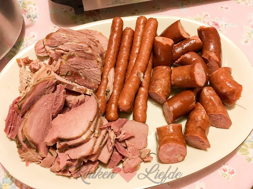 - Beenham, knakworsten (Hema) en rookworsten (slager en Hema)
