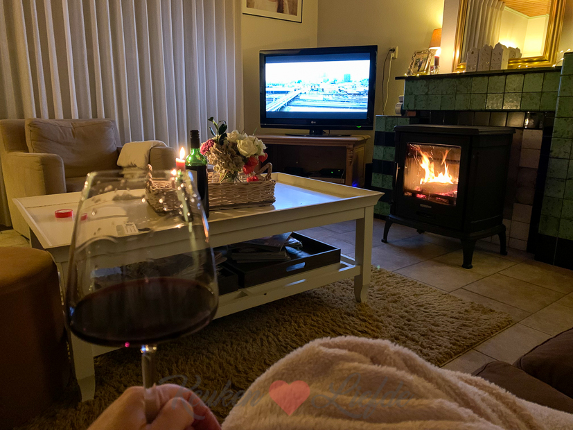 Ella-Marie heeft herfstvakantie en logeert bij de ouders van Johan. Johan is ook de de deur uit en stuurt me ’s middags een foto door van zijn lunch. Hij zit op kantoor en neemt dan vaak een maaltijd mee uit de diepvries om op te warmen in de magnetron. Vandaag had hij een bakje vegan curry uit de diepvries meegenomen van Crisp en dat was volgens hem een hele dikke aanrader. Ondertussen komt er bij ons thuis een pakketje binnen van Hands Off My Chocolate met hun nieuwe vegan bites. De crispy bites vind ik wat minder maar de peanut en popcorn Bites zijn heerlijk! Ella eet ’s avonds bij opa en oma want oma maakt haar favoriet: gebakken kipschnitzel belegd met brie. Na het eten haalt Johan haar weer op. Omdat koken nu een beetje onhandig is (we hebben alleen een klein keukenblokje met oven en inductiekookplaat maar geen afzuigkap en wasbak) halen Johan en ik ’s avonds pizza bij de pizzeria. Na het eten kruip ik met een glas rode wijn onder de dekentje op de bank. Het is koud in huis omdat de vloerverwarming voorlopig niet aan kan, maar gelukkig hebben we de houtkachel.