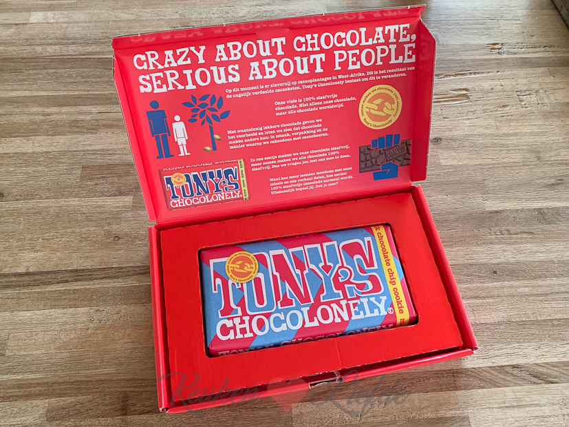 Er komt een doosje binnen met de nieuwe estafettereep van Tony’s Chocolonely: Melk Chocolate Chip Cookie. Die mogen ze er van mij inhouden. Superlekker! Hij ligt een jaar lang exclusief bij Albert Heijn en geeft dan het stokje weer door aan een nieuwe reep. Ella heeft vanavond een chill-avond met vriendinnen bij ons thuis en dus gaan we ’s middags even samen op pad om wat boodschappen te halen. Het is heerlijk weer en tussendoor genieten we nog even van een ijsje buiten in de zon. Ella had een bolletje smurfen- en halloween-ijs en ik had een bolletje appeltaart-ijs. Als we weer thuis zijn kook ik snel wat avondeten (ik kook wat kaastortellini, bloemkool, broccoli en wortel, maak wat kaassaus en gooi dat door elkaar) en daarna maken we de woonkamer gezellig. Terwijl de meiden aan het chillen zijn werken Johan en ik gezellig een avondje samen op kantoor.