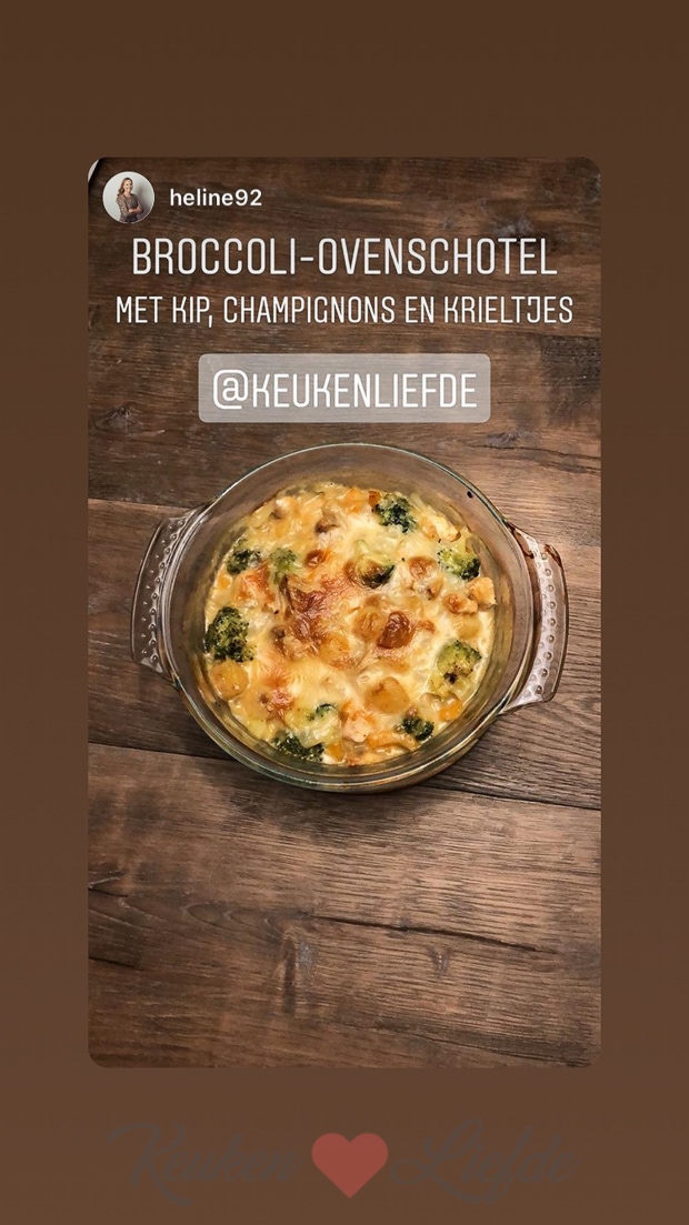 Leuk, deze foto zag ik op IG voorbijkomen. De broccoli-ovenschotel met kip, champignons en krieltjes is al jaren een van de best bekeken recepten op KeukenLiefde en krijgt nog steeds veel lovende reacties. Heb jij hem al gemaakt? 🙂