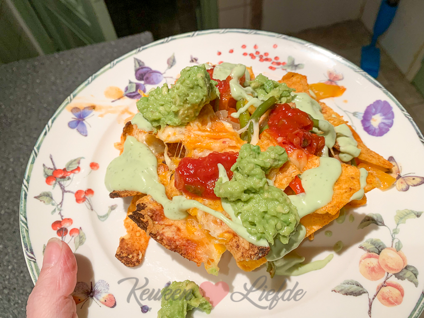 Terwijl Johan met Ella op het voetbalveld staat, sta ik in de keuken van mijn ouders kerstrecepten voor KeukenLiefde te maken. De dag vliegt voorbij. Als iedereen weer thuis is maken we een lekkere wandeling met Nacho. Daarna maakt Johan voor het avondeten de Mexicaanse ovenschotel met kip en nacho’s. Ella maakt de guacamole en yoghurt-avocadodressing en ik hoef helemaal niks te doen. Genieten!