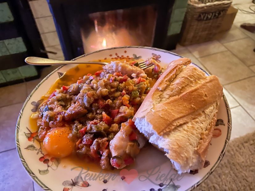 Ik krijg een mooi kookboek thuisgestuurd: Zilt. Een inspirerend kookboek met 75 recepten met zilte groenten (denk aan zeekraal, lamsoor, oesterblad en zeewier), inclusief moestuin- en teeltips. Ik ga hier zeker iets uit maken (zodra we weer een keuken hebben). Voor het avondeten haalde ik ’s ochtends bakken met eten uit de diepvries: verse tomatensoep en ratatouille. De tomatensoep is voor één persoon en warm ik op voor Ella met wat stokbrood erbij. De ratatouille schep ik in een ovenschaal en warm ik op in de oven van de combi-magnetron. Ik breek altijd een ei in de ratatouille om mee te garen en serveer hem dan met stokbrood erbij. Ik had ook nog 3 kipfilethaasjes met pesto en met spek omwikkeld uit de diepvries gehaald en die leg ik ook boven op de ratatouille om mee te warmen. Het ziet er misschien niet zo smakelijk uit maar het was zó lekker. Ratatouille en lasagne, daar mag je me echt voor wakker maken. Beide recepten vind je trouwens ook in ons nieuwe kookboek ‘Familiegerechten‘. 😋