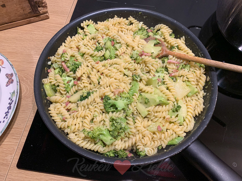 Als Johan en Ella weer de deur uit zijn werk ik een paar uurtjes op kantoor. Daarna ga ik aan de poets. Na weken in de rommel gezeten te hebben is het fijn dat we nu de keuken weer kunnen gebruiken en om alles schoon te maken. ’s Avonds kan ik voor het eerst sinds weken weer koken in een schone keuken. Ik maak een lekkere pasta met spekjes, broccoli en kaassaus. Die maak je zo: Spekjes in koekenpan langzaam uitbakken tot ze beginnen te kleuren, dan uitje en knoflook erbij en even meefruiten. Pasta beetgaar koken. Broccoli fijnsnijden (stronk schillen, in plakjes snijden en ook toevoegen! Wat mij betreft het lekkerste deel van de broccoli) en samen met verkruimelde kippenbouillontablet toevoegen aan spek. Zakje kaassaus aanmaken met water (zoals omschreven staat op de verpakking) en toevoegen (in plaats van zakje kaassaus kun je ook kookroom, scheutje pastakookvocht en handje parmezaan gebruiken). Aan de kook brengen en vuur lager zetten. Zachtjes laten koken tot broccoli beetgaar is. Pasta afgieten en door de saus roeren. Je kunt ook nog wat gehalveerde cherrytomaatjes toevoegen. Eet smakelijk!