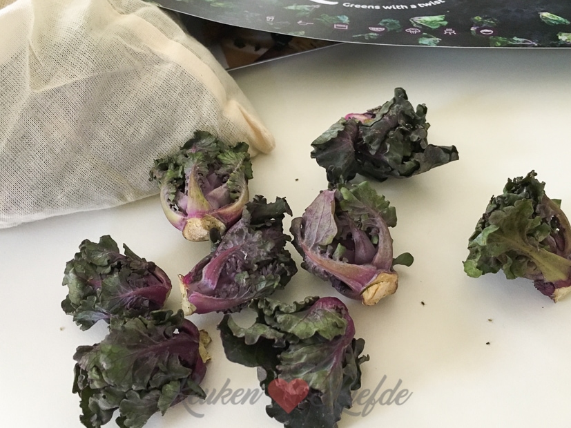 Ik krijg dit zakje thuisbezorgd met Kalettes: een combinatie tussen boerenkool en kleine spruitjes. Ik kende ze nog niet, maar ben heel benieuwd naar de smaak. Ze zien er in ieder geval erg leuk uit! Kende jij ze al?
