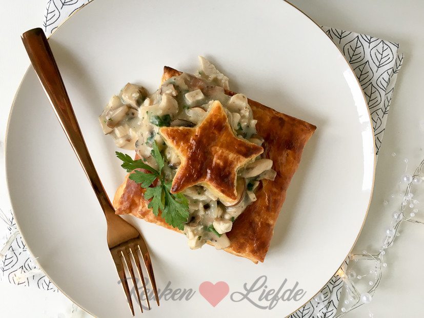 Ik maak vandaag twee kerstrecepten die ik binnenkort met je ga delen: zelfgemaakte bladerdeegpasteitjes (zo makkelijk!) gevuld met kalkoenragout (voor- of hoofdgerecht) en briochesterren met paté en cranberrysaus (hapje).