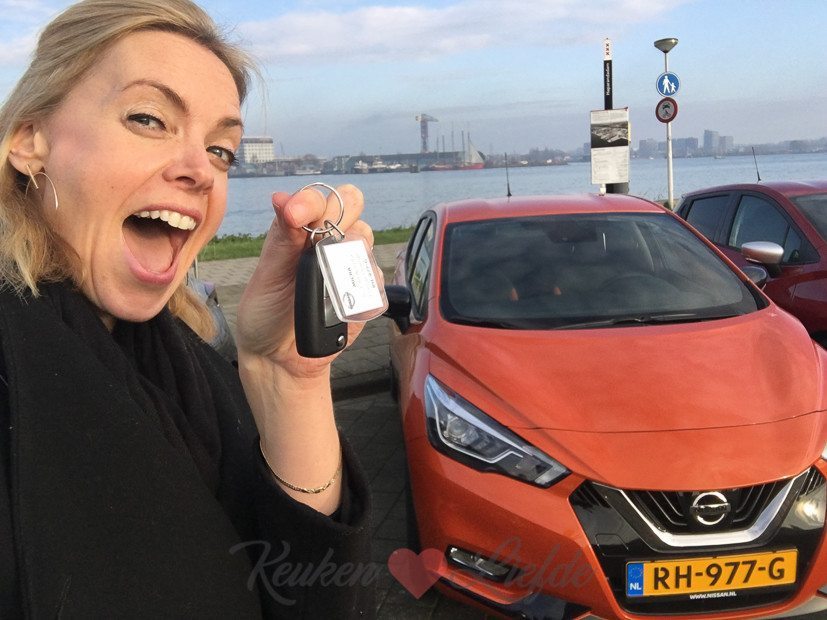 Johan zet me af bij het REM Eiland (restaurant) in Amsterdam, waar ik een lunch heb met Nissan. Na de lunch mag ik de sleutel in ontvangst nemen van een gloednieuwe MICRA. Joehoe, ik mag drie maanden lang in dit oranje snoepje rijden! Wat een bofkont ben ik. Nog voordat ik de snelweg op rijd ben ik verliefd. Wat een fijne wagen. Misschien zag je 0p Instagram en Facebook al wat voorbij komen, maar binnenkort vertel ik je meer over deze leuke samenwerking in een aparte blog.