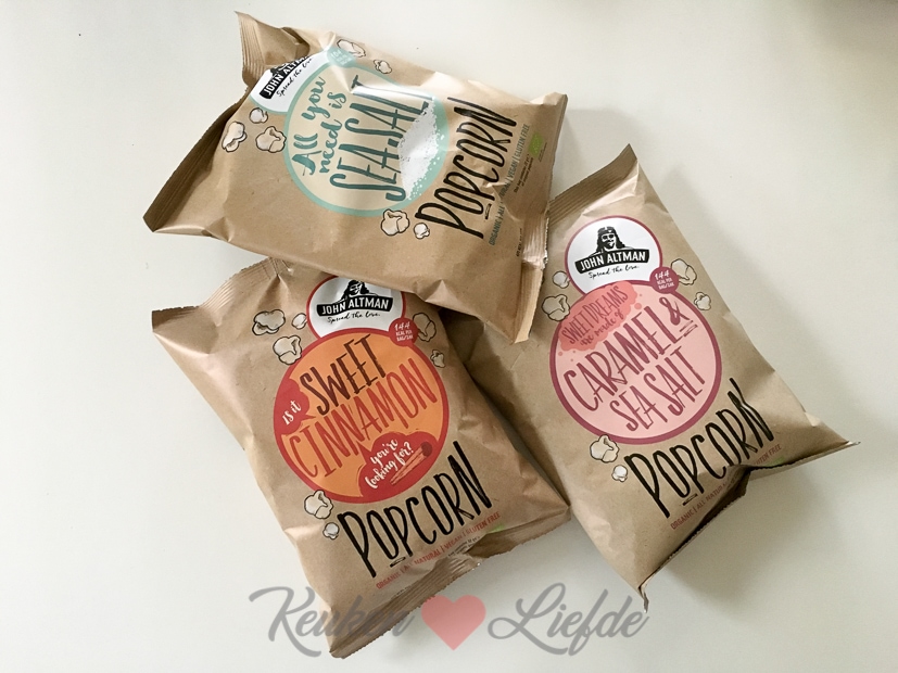 Nog meer foodpost. Dit keer biologische popcorn van John Altman in de smaken Sea Salt, Caramel & Sea Salt en Sweet Cinnamon. Ik heb ze nog niet geproefd dus wordt vervolgd.