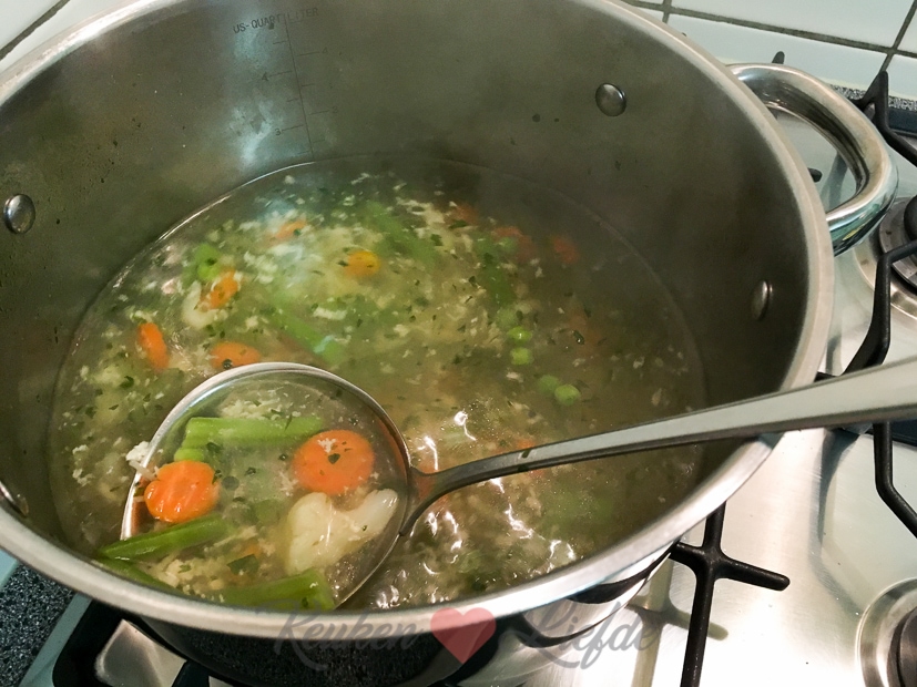 Voor een campagne maak ik een Braziliaanse kipsalade. Van het kookvocht van de kipfilets maak ik ’s avonds lekkere kippensoep.