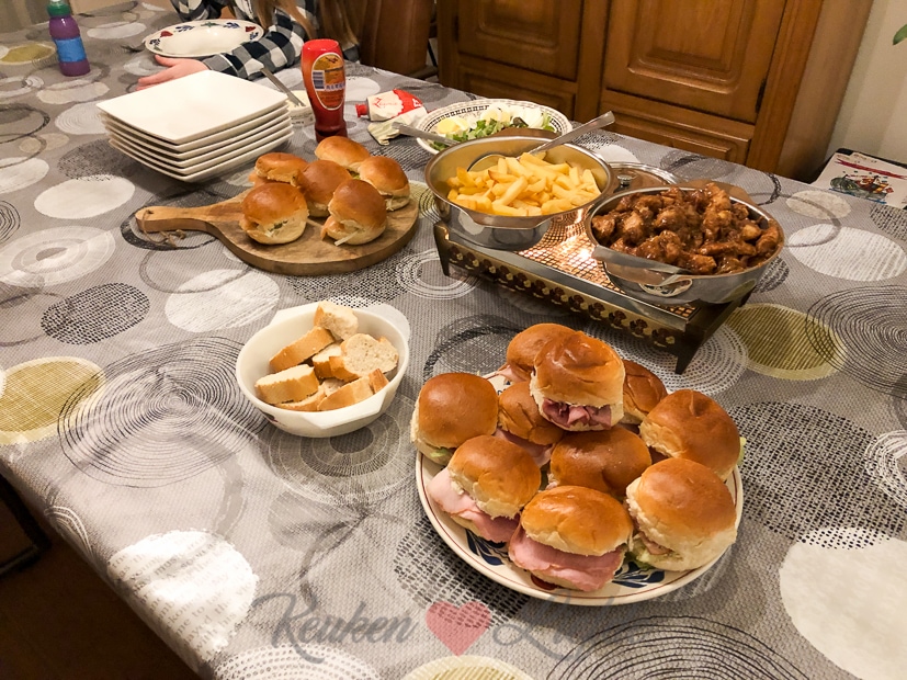 Aan het eind van de middag gaan we naar Johan zijn ouders om samen met mijn schoonzus, zwager en neefje sinterklaasavond te vieren. Na het uitpakken van de cadeautjes zet mijn schoonmoeder een lekker zelfgemaakt buffet neer met belegde broodjes met ham, fricandeau, rosbief en zalm, kip in satésaus, ovenfrietjes, stokbrood en kruidenboter en een lekkere salade. Lekker!!