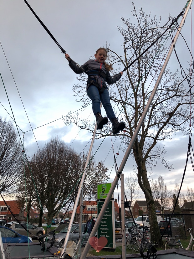 Na het bakken van de cake moet hij afkoelen voordat ik er verder mee aan de slag kan en dus ga ik even met Ella naar Wamelland. Normaal moet Ella altijd voetballen op zaterdag maar door de regen ging dat nu niet door en zo kan ze toch even haar energie kwijt. 😉