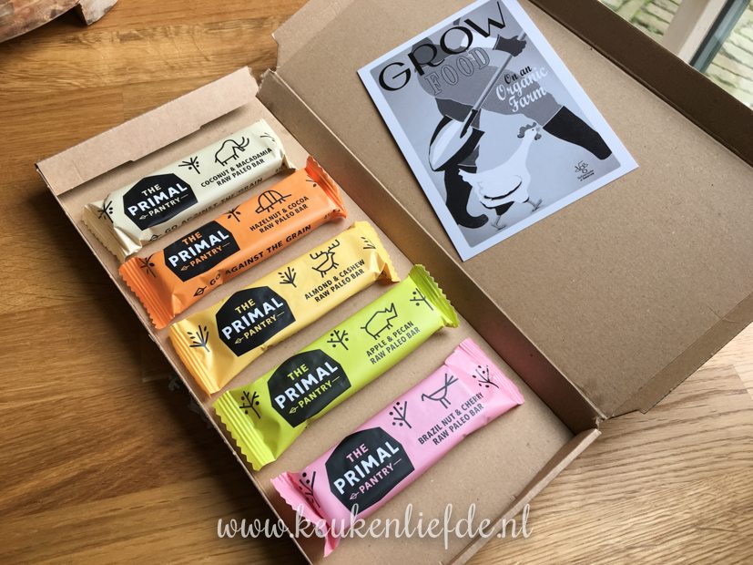 Foodpost! Ik ontvang paleo energierepen van The Primal Pantry, gemaakt van fruit, noten en dingen als cacao en kokos. Mmmmm…