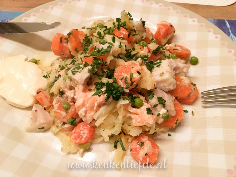 Voor het avondeten maak ik een rösti-ovenschotel met wortel en vis. Erg lekker. Het recept ga ik binnenkort met je delen.