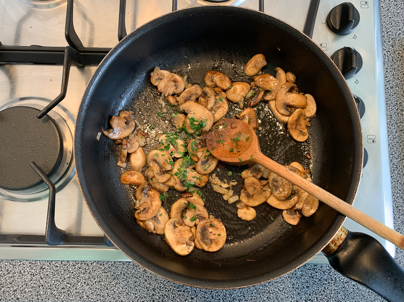 In de koelkast vind ik nog een half bakje gesneden champignons die op moeten. Ik maak er een lekker bladerdeeghapje mee. Was erg lekker dus ook dit recept komt eraan.