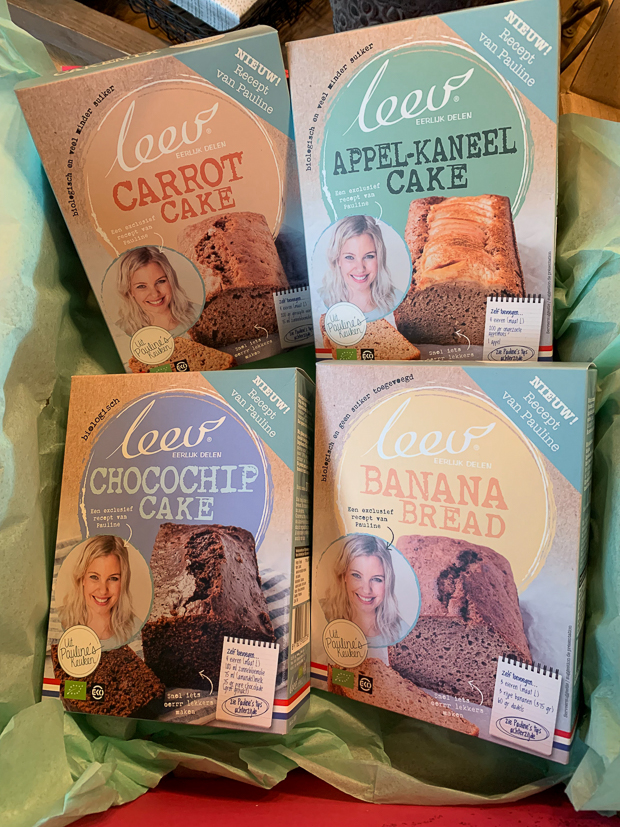 Tussen de bedrijven door krijg ik nog deze leuke foodpost thuisbezorgd van Leev. In samenwerking met Pauline van Uit Pauline’s Keuken hebben ze vier pakken cakemix gemaakt die 100 % biologisch zijn. Een leuk woensdagmiddag project voor mij en Ella. 🙂