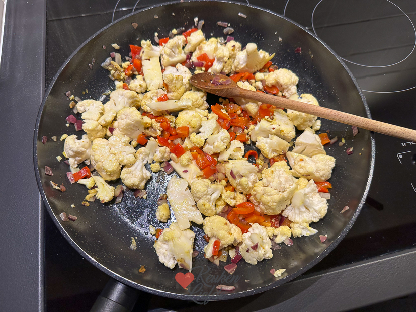 Vandaag staat er een kookdag op het programma en sta ik vroeg in de keuken. Ik maak vijf nieuwe recepten. Het eerste recept dat op de foto staat eet ik op als lunch want ik had nog niks gegeten. Na zo’n kookdag ben ik altijd redelijk gesloopt maar één voordeel: ik hoef ’s avonds niet meer te koken.