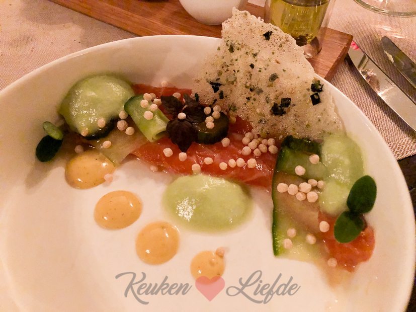 Johan en ik nemen het ervan en gaan lekker met z’n tweeën uit eten bij Herberg De Zoelensche Brug in Zoelen. We nemen het all-in zesgangen tasting menu. De eerste gang was zalm, de tweede gang was een bietensalade met walnoten en geitenkaas, derde gang carpaccio, vierde gang (de enige gang die warm was) was eendenborst (wederom met biet), vijfde gang was een amuseglaasje (zonder wijn), en de laatste gang was een kaasplankje. Het kaasplankje hebben we op verzoek geruild met het gewone dessert omdat Johan en ik dol zijn op kaas als afsluiting. Het eten was goed, maar ik vond het jammer dat we eerst drie voorgerechten kregen en maar één warm hoofdgerecht. Ook miste ik een lekkere (dessert)wijn bij het amuse dessertglaasje (vijfde gang). Noem me maar een zeur.