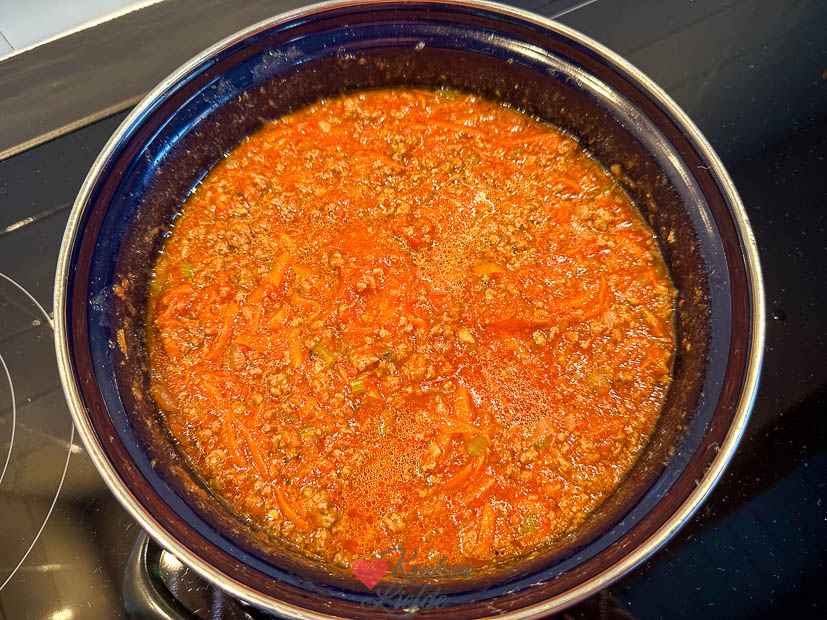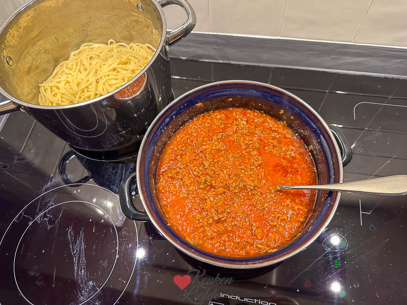 Maandag maakte ik een pan bolognesesaus voor het avondeten (dit recept), daar had ik al een tijdje zin in. Ik liet hem lekker lang sudderen net zoals stoofvlees, dan wordt het gehakt boterzacht. ’s Avonds kookte ik er spaghetti bij en konden we lekker eten.