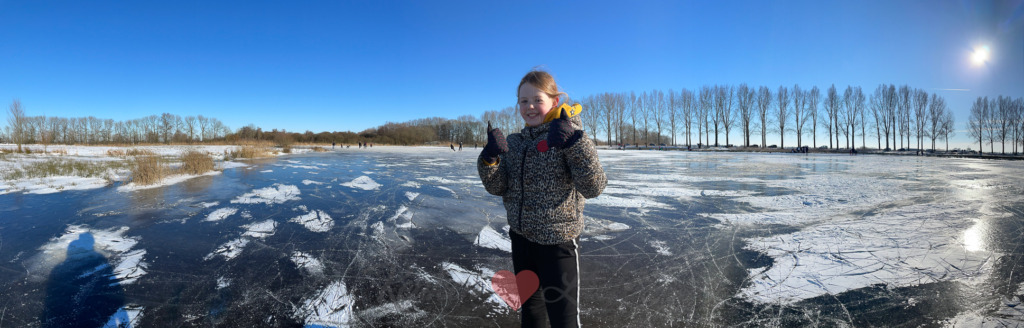 ’s Middags gingen we schaatsen op een ondergelopen weiland bij ons in de buurt.