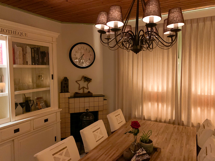 De lampenkapjes die we besteld hadden voor de kroonluchter zijn binnengekomen en we zetten ze direct op de lampjes. Heel blij mee, maakt de kroonluchter net wat completer.