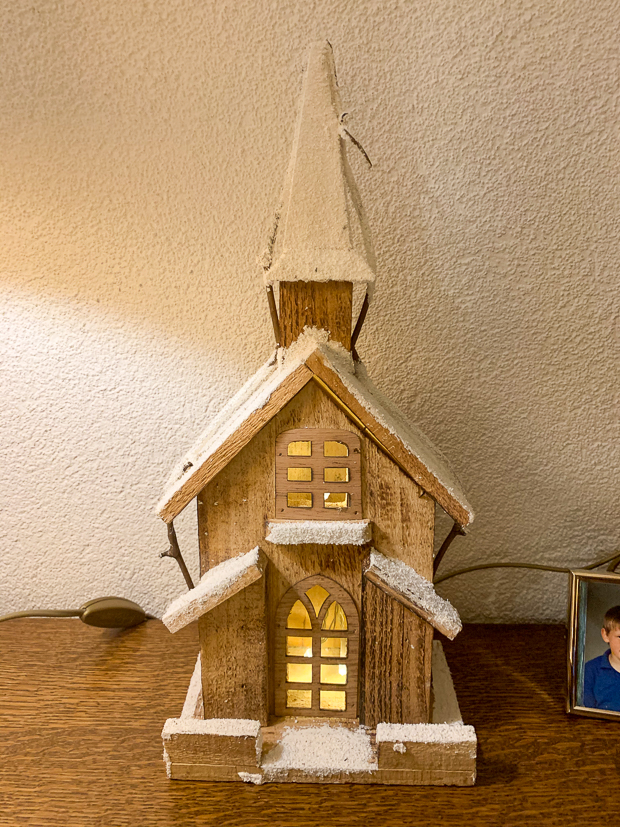 - Het kerstkerkje staat nog steeds gezellig te branden bij mijn moeder…