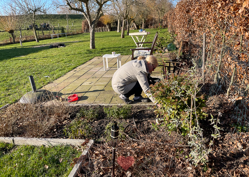 Wat zijn we verwend met het weer de afgelopen tijd! Het zonnetje maakte overuren! Ook vandaag is het weer een prachtige dag waardoor ik de lentekriebels al flink voelde! Terwijl Ella-Marie zich met een groepje teamgenootjes vermaakt op het voetbalveld waren Johan en ik de hele dag buiten in de tuin aan het rommelen. Johan heeft de moestuin inmiddels helemaal afgesloten met schapenhek, beukenhaag en gaas zodat Nacho er niet meer in kan komen en van de houten planken van de deel gaat hij moestuinbakken maken.