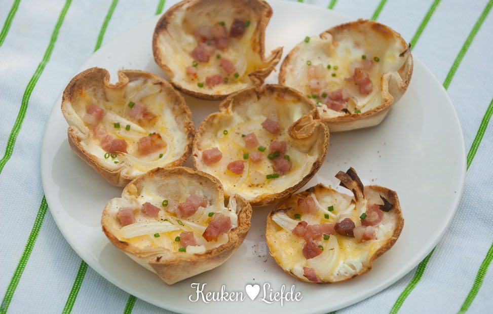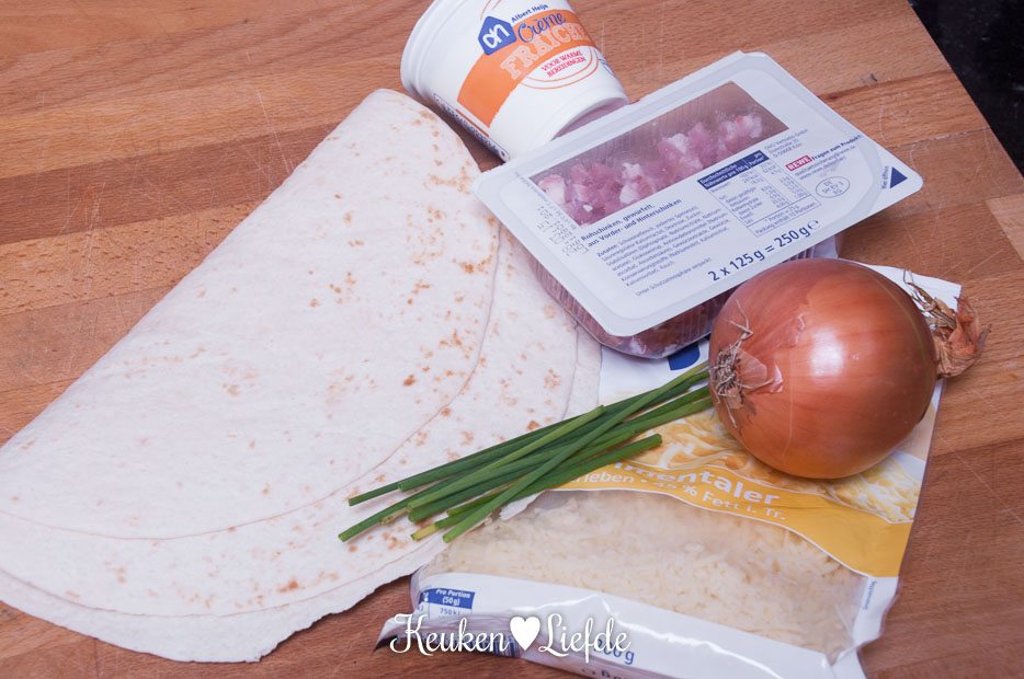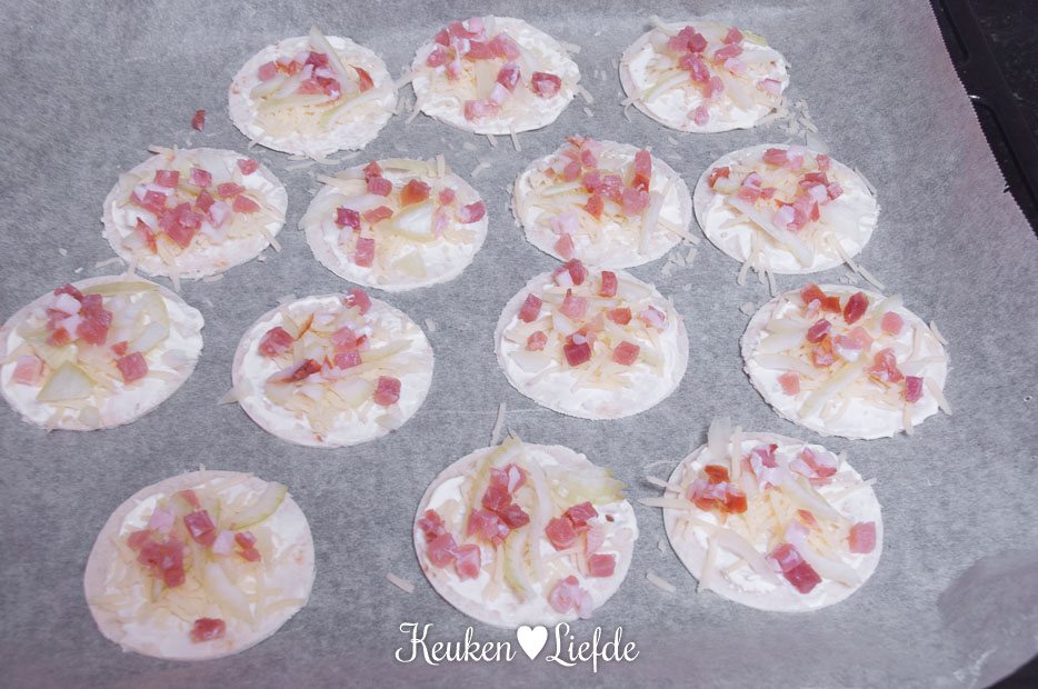 van die wraps over.Die mini Flammkuchen gemaakt.