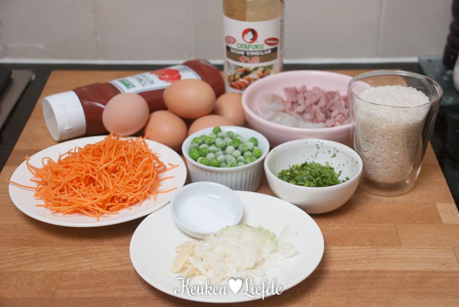 - 400 g rijst, gekookt en afgekoeld