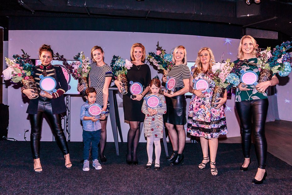 - Van links naar rechts: Beste Foodblogger Kookboek Killerbody 2 – Fajah Lourens, Beste Food Foto Ellouisa Cooking – Elisabeth Scholten, Food Blog van het Jaar 2017 en Beste Foodvlogger/Youtuber Keukenliefde – Annemiek Verweij, Beste Blog Design Zoetrecepten – Mariette van Tuyl, Beste Special Interest Food Blog Clean Eating Now – Dieuwke Tijsen, Beste Gerecht Oh My Pie – Marike Bol