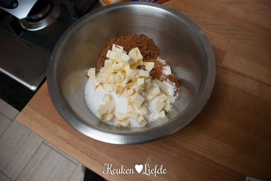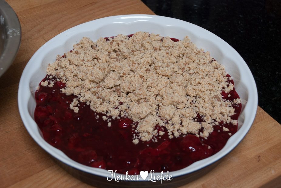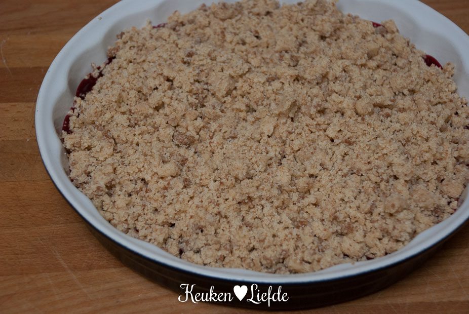 Bak circa 20 minuten in de oven, of totdat de kruimels licht goudbruin kleuren.
