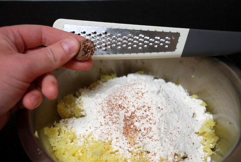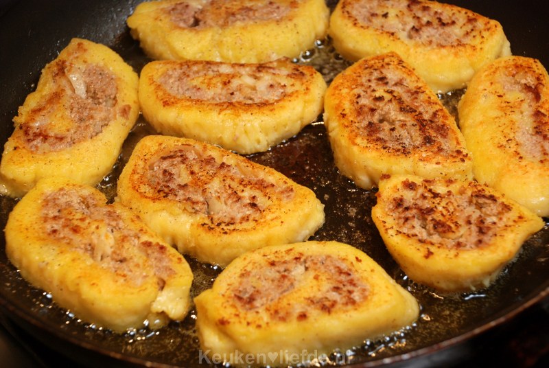 De gehaktrollade bestaat uit een jasje van aardappeldeeg met daarin gekruid gehakt, opgerold als een rollade. Het aardappeldeeg maak je eenvoudig van aardappelpuree, bloem en eigeel; hetzelfde recept als voor gnocchi. De rollade snijd je vervolgens in plakken die je goudbruin bakt in de koekenpan. Eigenlijk heel eenvoudig.