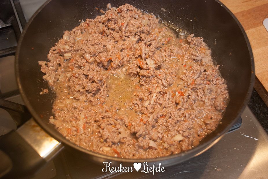 Ook kan je lang wachten tot bakvet verdampt, gaat niet gebeuren 😉 alleen water(ige) stoffen zoals het vocht dat uit groenten komt kan verdampen, vet moet je echt afgieten en wel voor je kruiden bij het gehakt doet anders gooi je de smaken ook weg. Jammer!
