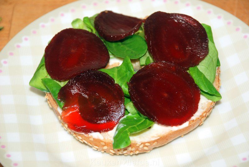 - Paar dunne plakjes gekookte rode biet