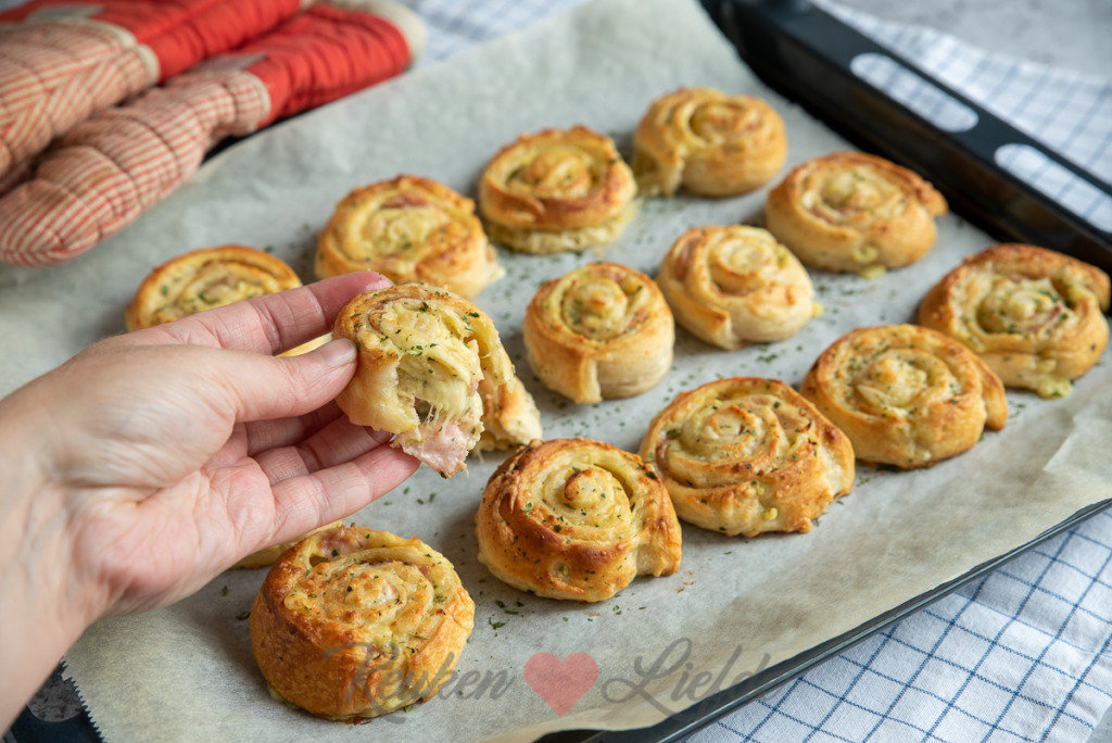Variatietip! In plaats van croissantdeeg kun je ook een rol vers bladerdeeg gebruiken. Het is dan meer een hartig borrelhapje als ontbijt of lunch.