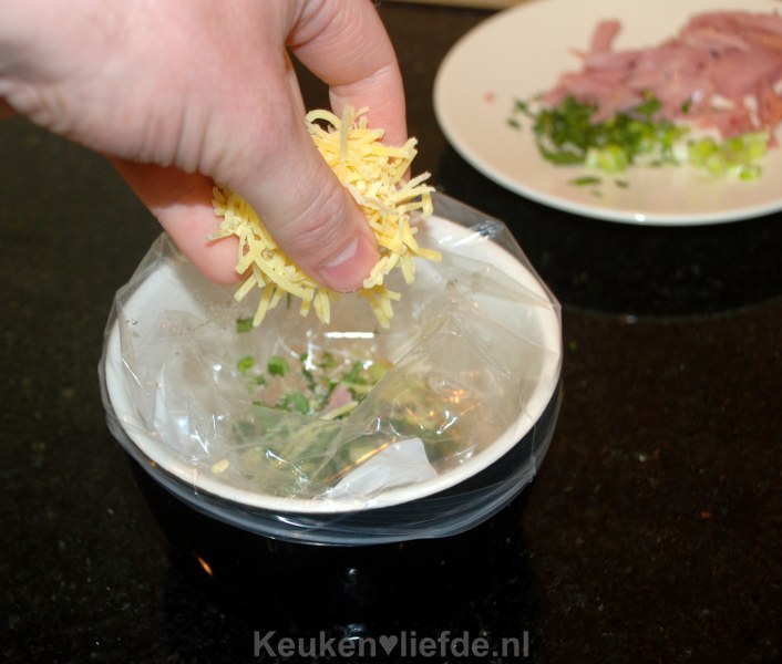 Ham-kaas omelet uit een zak