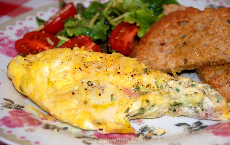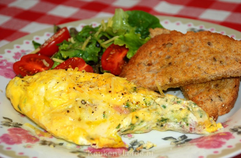 Serveer de omelet eventueel met wat geroosterd brood.