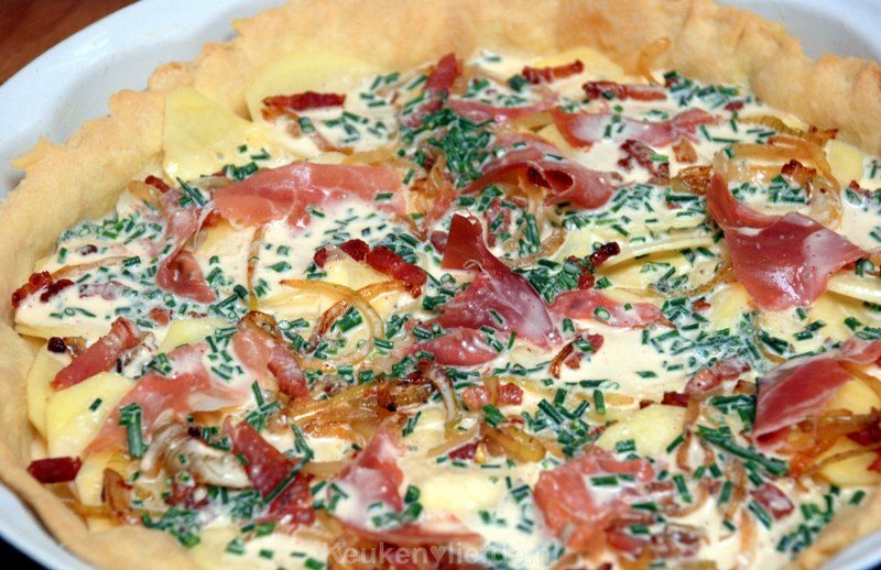 Hartige aardappeltaart met spek